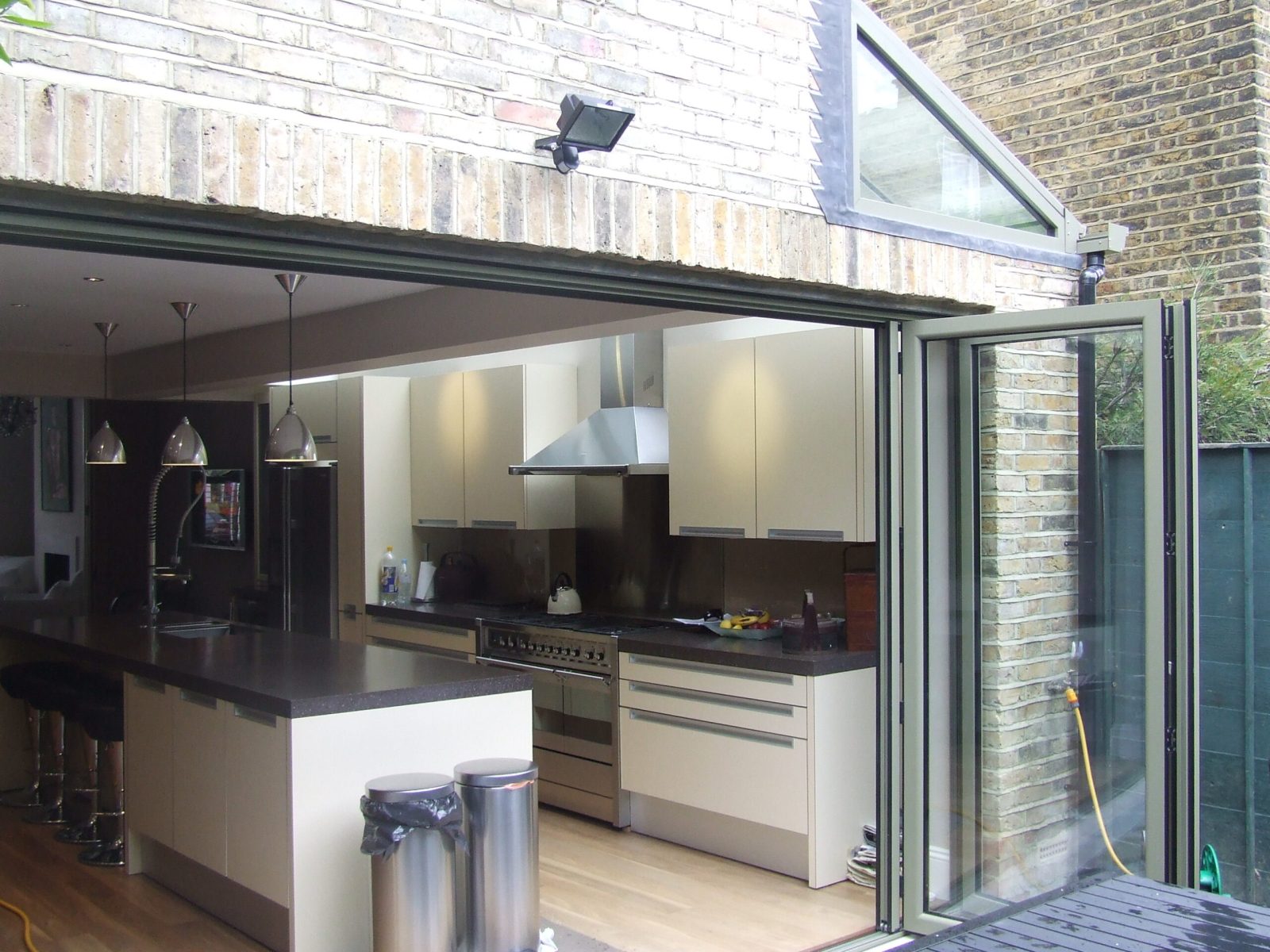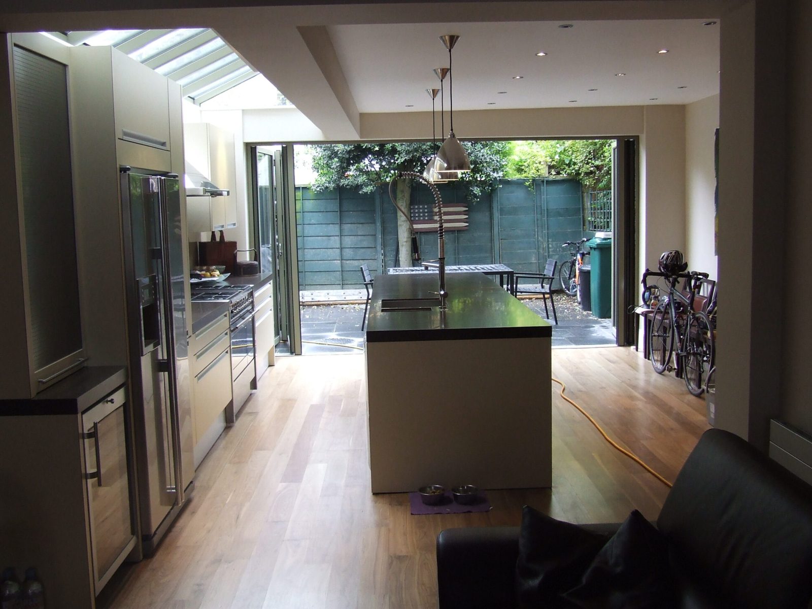 This terraced house near Clapham Common was refurbished and a side return extension constructed to provide a more spacious kitchen and dining area. A fully glazed roof and a set of bi-folding doors provide ample daylight. A new kitchen was installed with an island unit housing the sink and dishwasher and a new lighting system was fitted. The utility room was re-planned to accommodate a wc, washing machine and dryer.
